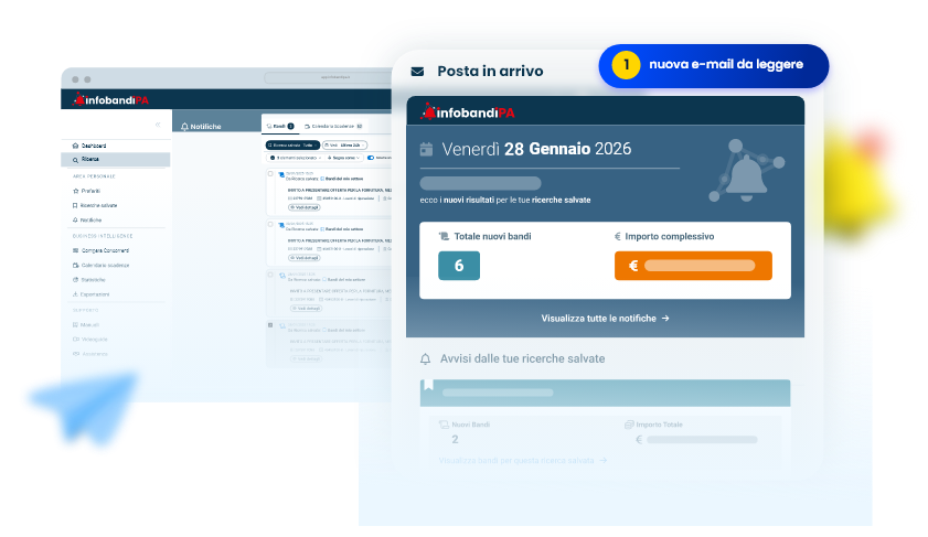 Ricevi ogni giorno, direttamente nella tua casella email, solo i bandi rilevanti, senza perdere tempo su risultati non pertinenti.